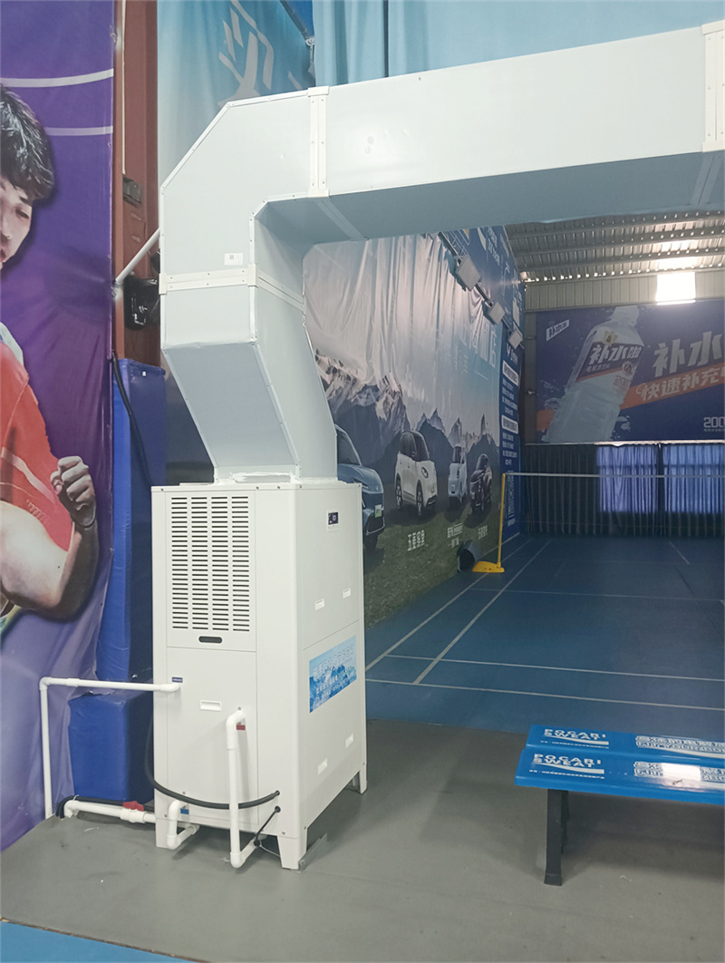 羽毛球馆作为高空间、大跨度的运动场所,普遍存在以下高温问题:一是场馆空间封闭,夏季太阳辐射透过屋顶和侧窗进入室内,热量易积聚且难以自然散发;二是运动过程中,球员身体产热量大,加上场馆内通风不畅,导致室内温度持续升高,通常夏季室内温度可达 32-38℃;三是传统风扇等降温设备仅能实现空气流动,无法有效降低环境温度,且易形成局部强风,影响羽毛球飞行轨迹,干扰运动体验。